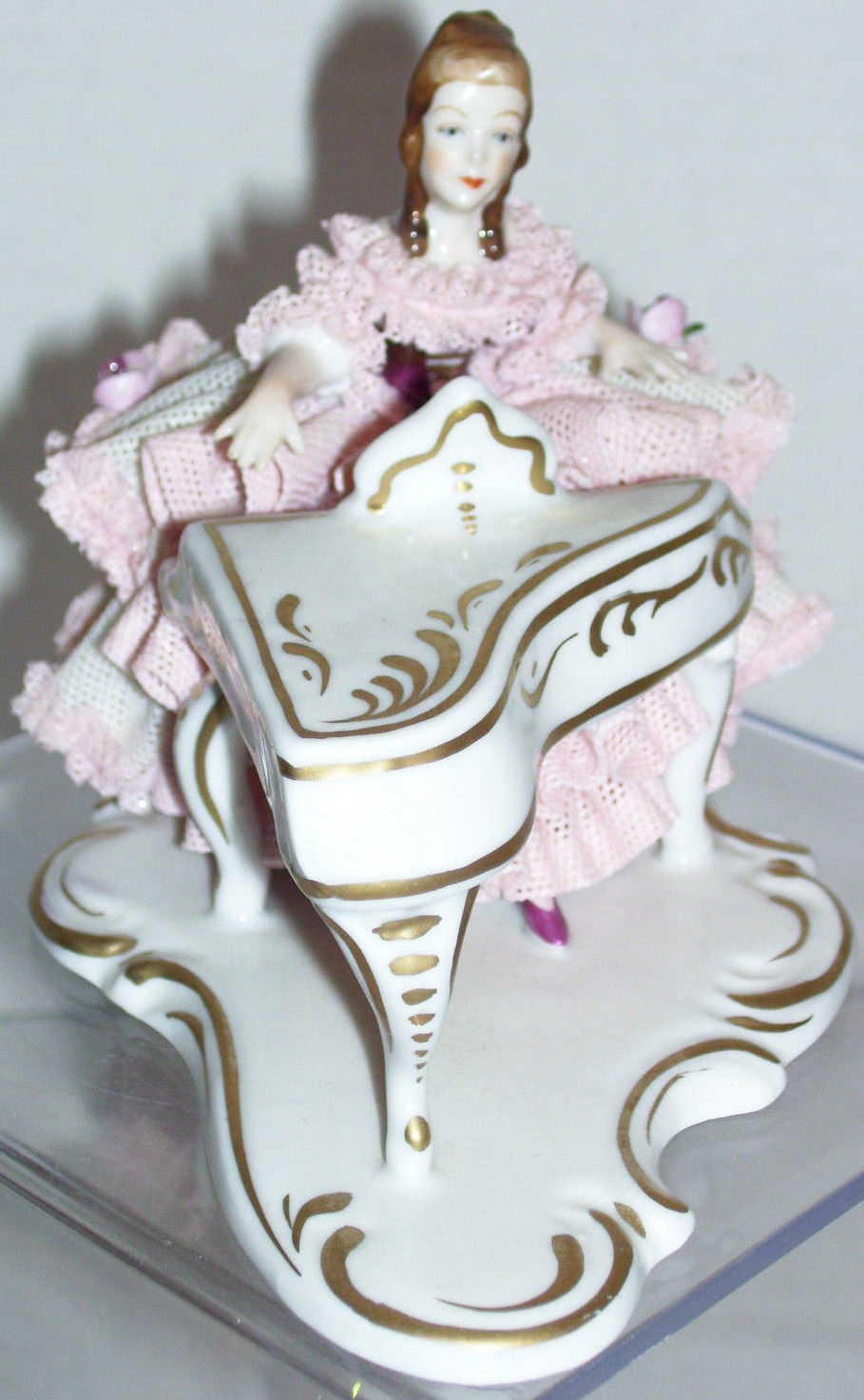 Title (ebay affiliate link): MINT Vintage Lace German Germany Dresden Karl Klette Lady at Piano Figurine