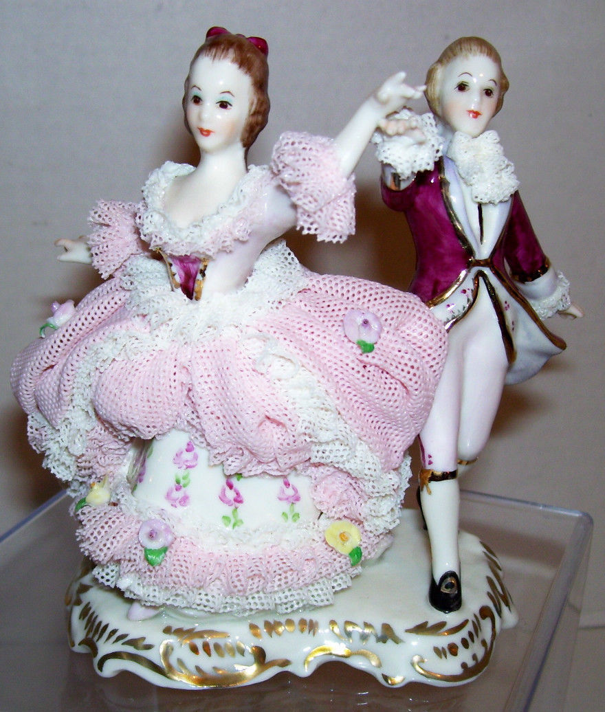 MINT Vintage Lace Irish MZ Dresden Minuet Dancing Couple Figurine