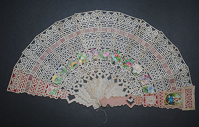 RARE ANTIQUE VICTORIAN DIE CUT ROSES ROMANTIC SCENES BRISE FAN
