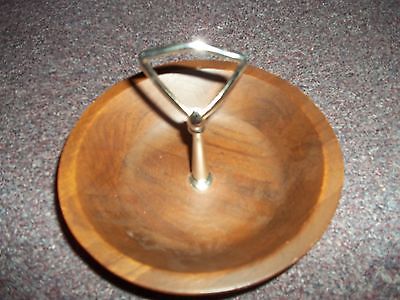 vintage retro wood bowl with silvertone handle good shape approx 6 inch 2 i