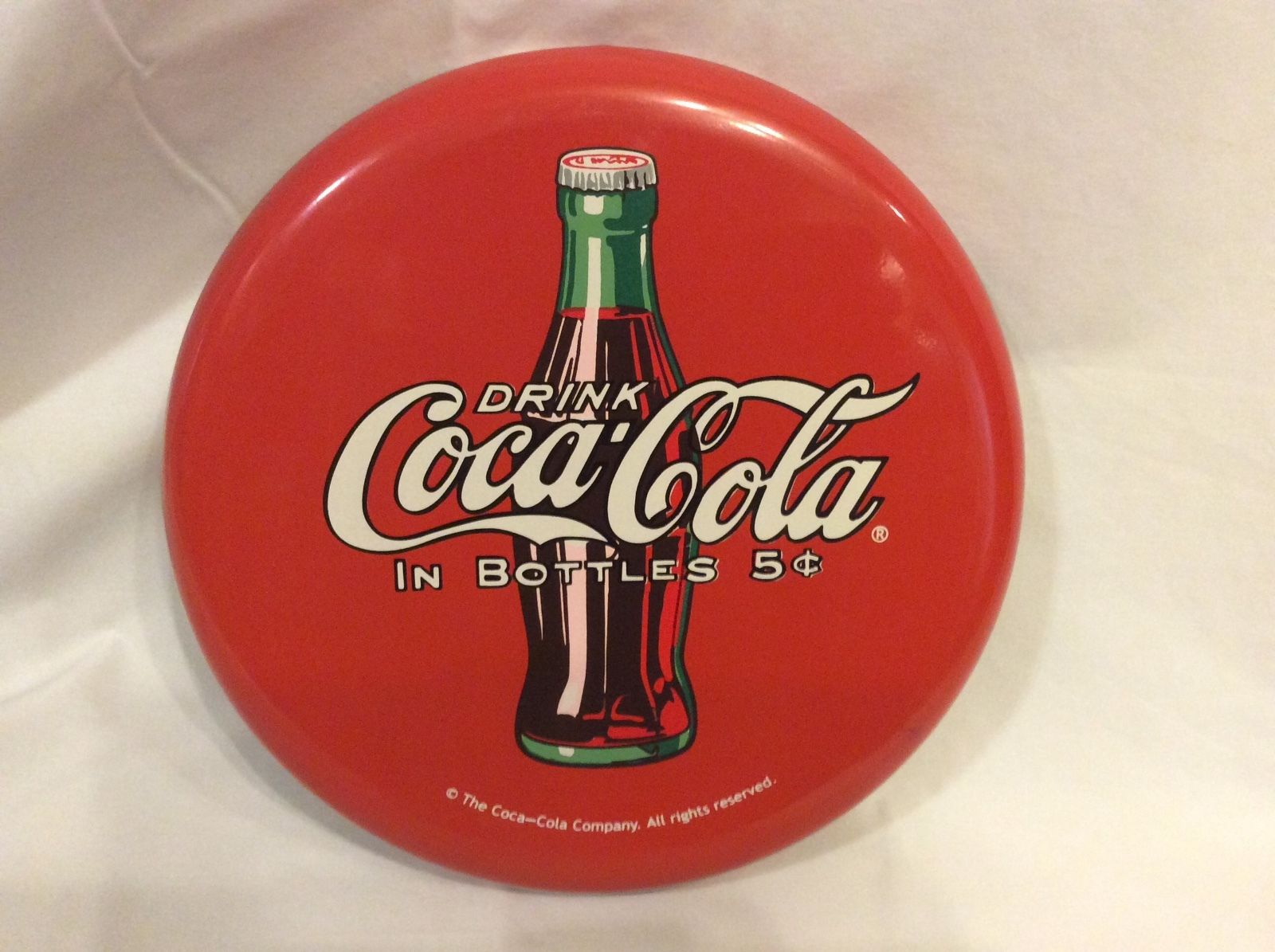 Title (ebay affiliate link): VINTAGE STYLE COCA COLA ROUND BUTTON BOTTLE SIGN DRINK COCA COLA 5 CENTS
