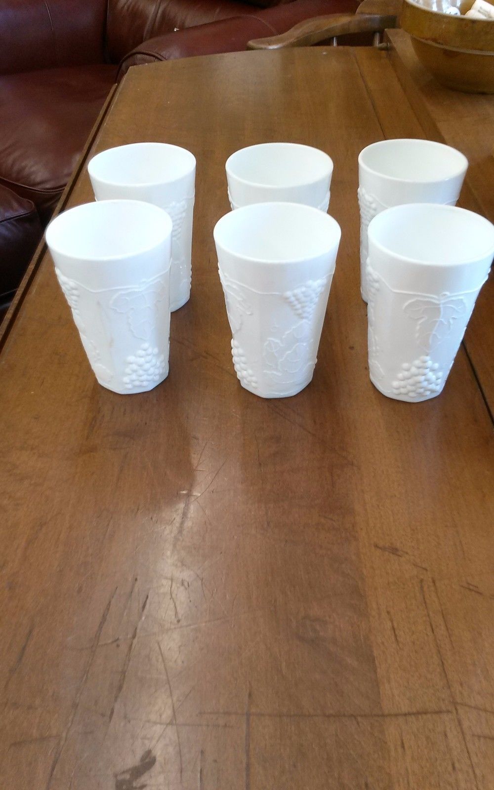 Title (ebay affiliate link): 6 Vintage Indiana Milk Glass Juice Glasses - Harvest Grape