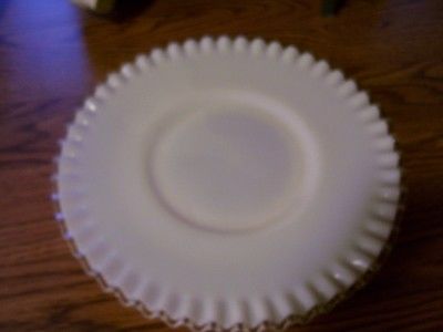 12.5" VTG FENTON MILK GLASS SILVER CREST RUFFLED CAKE PLATE STAND LOW FOOTED
