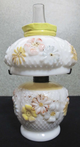 Title (ebay affiliate link): Antique Miniature Hand Painted Floral Milk Glass Oil Lamp Shade w/ Hurricane yqz