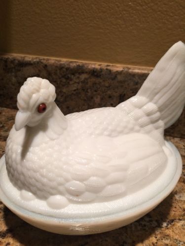 Title (ebay affiliate link): CHALLINOR & TAYLOR MILK GLASS HEN ON NEST / BOX GLASS EYE 1892