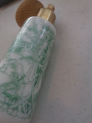 vintage EMERAUDE perfume Atomizer green art deco milk glass perfume bottle