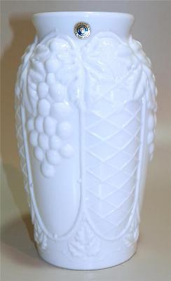 VINTAGE WESTMORELAND MILK GLASS PANELED GRAPE VASE 10" w/ LABEL ~ EXCELLENT!