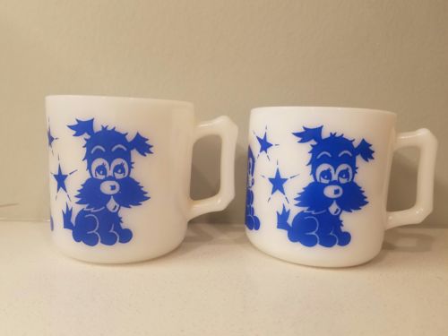 Title (ebay affiliate link): 2 VIntage Milk Glass Child's Mug Cup Hazel Atlas BLUE BUNNY PUPPY DUCK