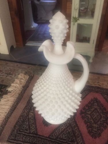 Fenton Hobnail Milk Glass Rare Wine Decanter with Stopper