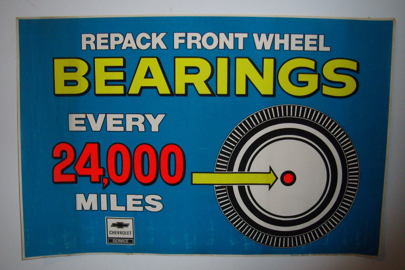 Vintage Chevrolet Service "Wheel Bearings" Dealership Black Light Poster Sign