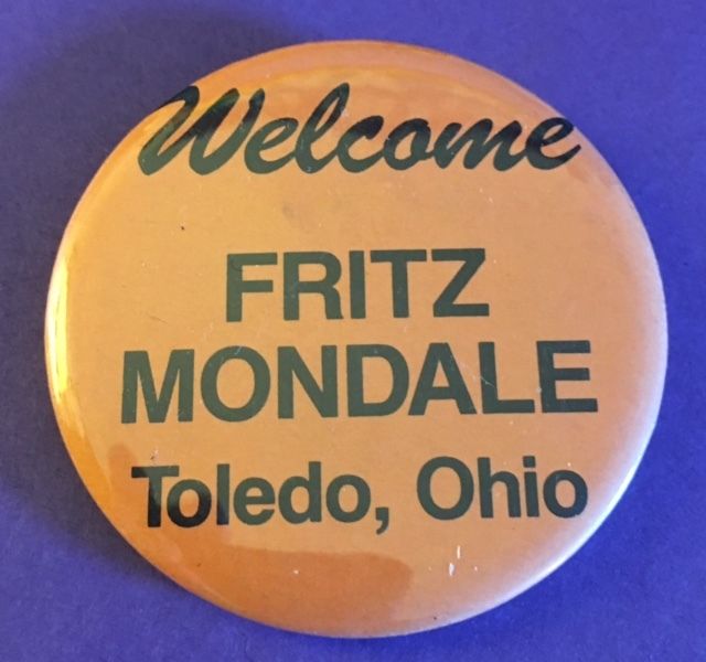 Title (ebay affiliate link): Welcome Fritz Mondale, Toledo, Ohio 2 1/2 Inch Political Pin Pinback Button