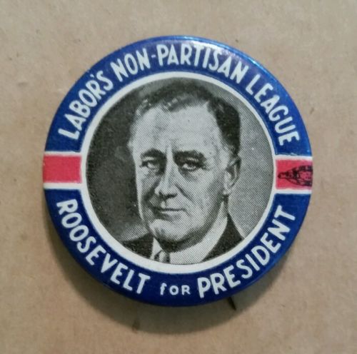 Title (ebay affiliate link): Labor's Non-partisan League,Roosevelt For President,Campaign Pin,1930's