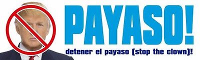 Title (ebay affiliate link): Bumper Sticker: Anti-Trump. Detener el Payaso! Stop the Clown! Stop the Hatred!