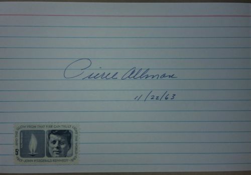 RARE PIERCE ALLMAN SIGNED CARD KENNEDY ASSASSINATION EYEWITNESS JFK RAN INTO LHO