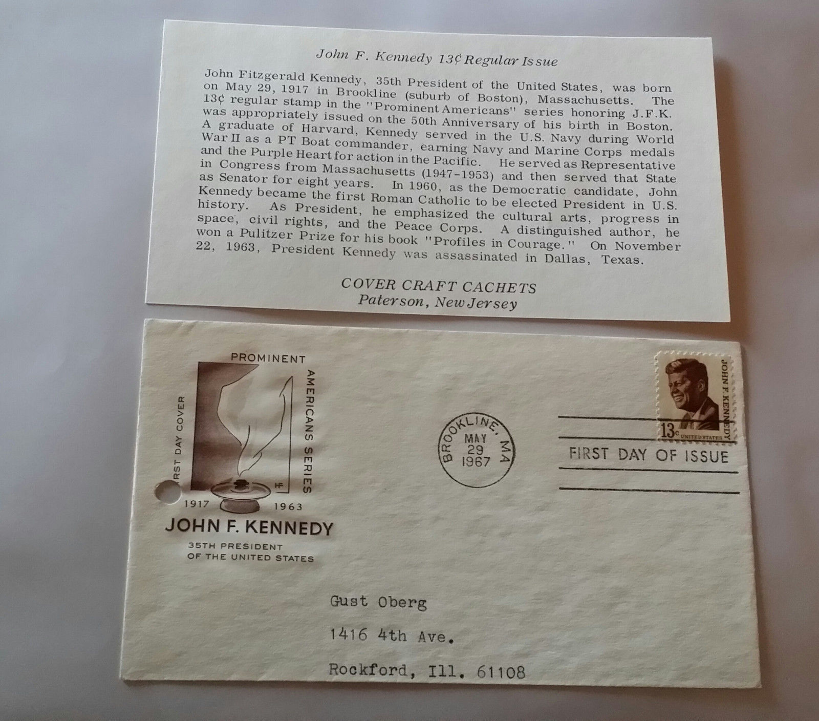 Original Rare JFK 13 Cent FDC - Historic - Brookline