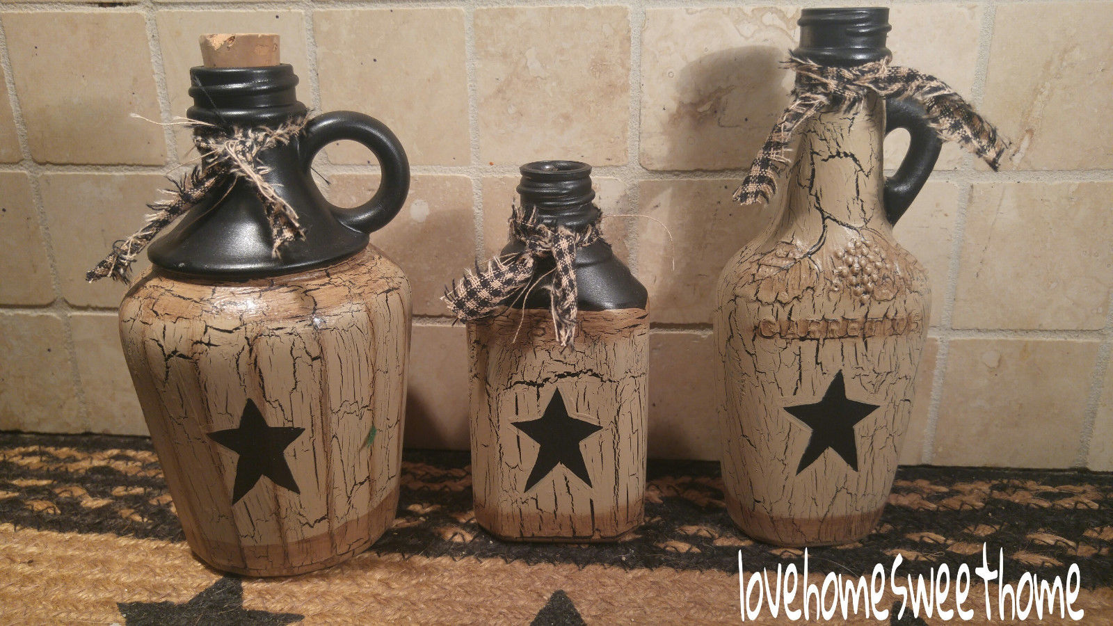 Title (ebay affiliate link): Primitive Crackle Tan & Black Stars Vintage Glass Bottles Lot of 3 ~ Country