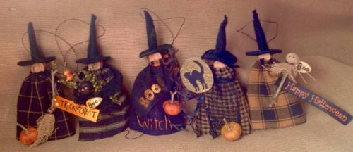 MINIATURE PRIMITIVE 2 1/2 Inch WITCHES HALLOWS EVE PARADE TREE ORNIE HALLOWEEN