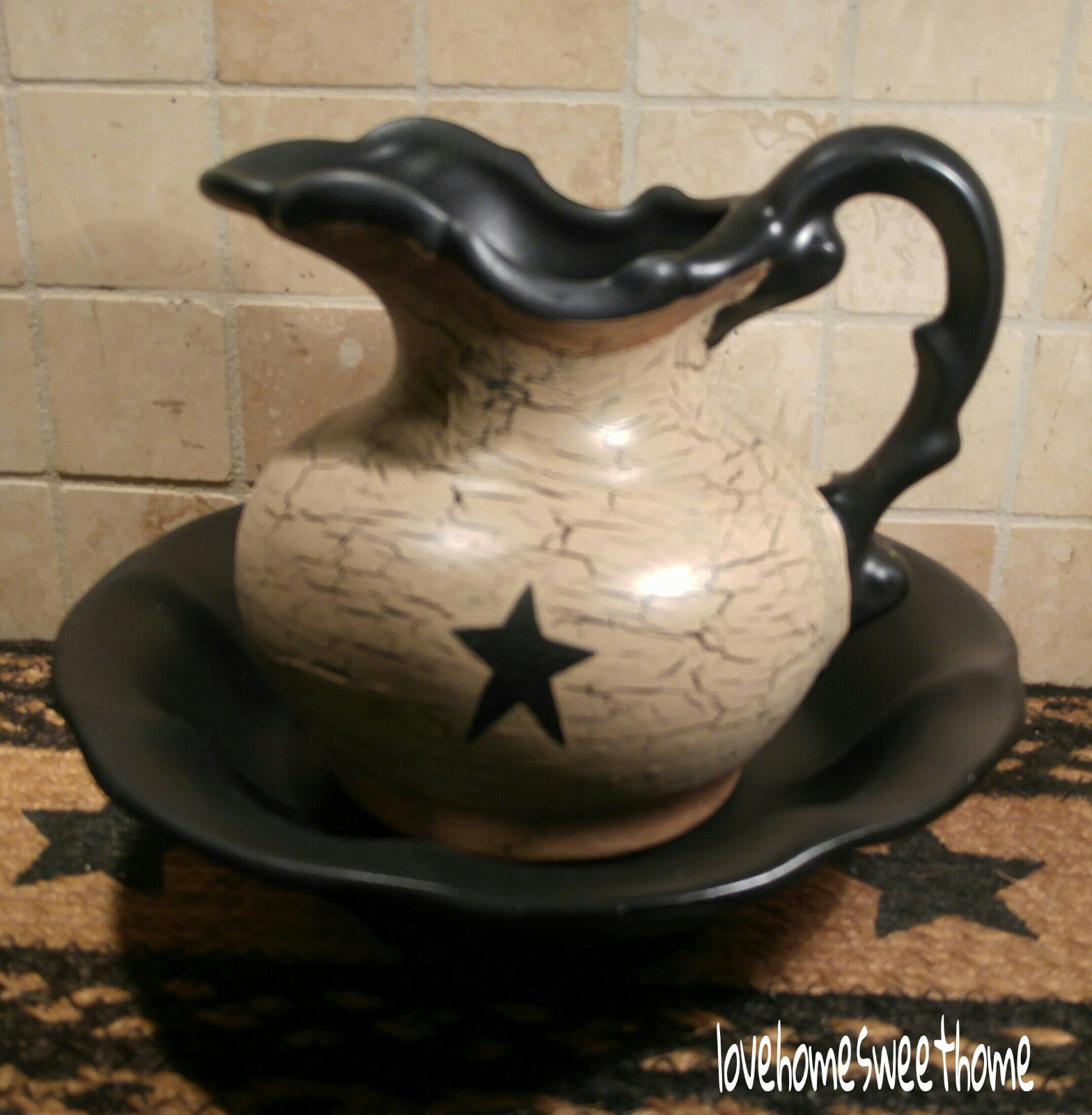 Title (ebay affiliate link): Primitive Crackle Tan & Black Star Ceramic Pitcher & Bowl Set ~ Country Decor