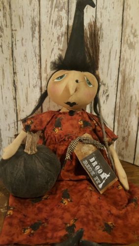 Title (ebay affiliate link): Primitive Halloween Witch Doll w/ Broom & Black Pumpkin~*~Fall~*~Spooky~*~