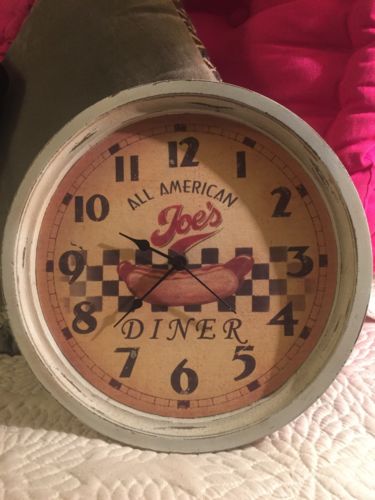 Title (ebay affiliate link): Vintage 1950's All American Joe's Diner Wall Clock/Artist Martin Wiscombe/Rare
