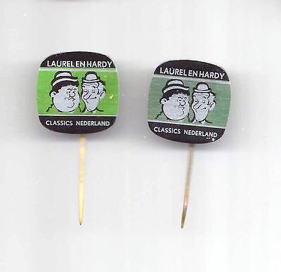 2 tin dutch sixties badges of Laurel and Hardy