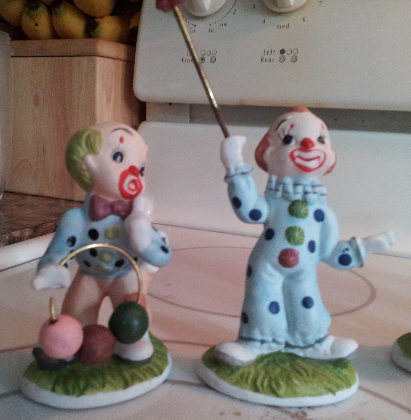 Title (ebay affiliate link): Lot of 2 Adorable Clown Figurines with Balloon and Ring 4" & 6-1/2" tall