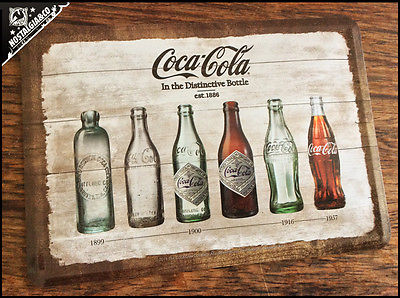 Title (ebay affiliate link): New Official COCA COLA Bottles Metal Postcard mini tin sign card coke evolution