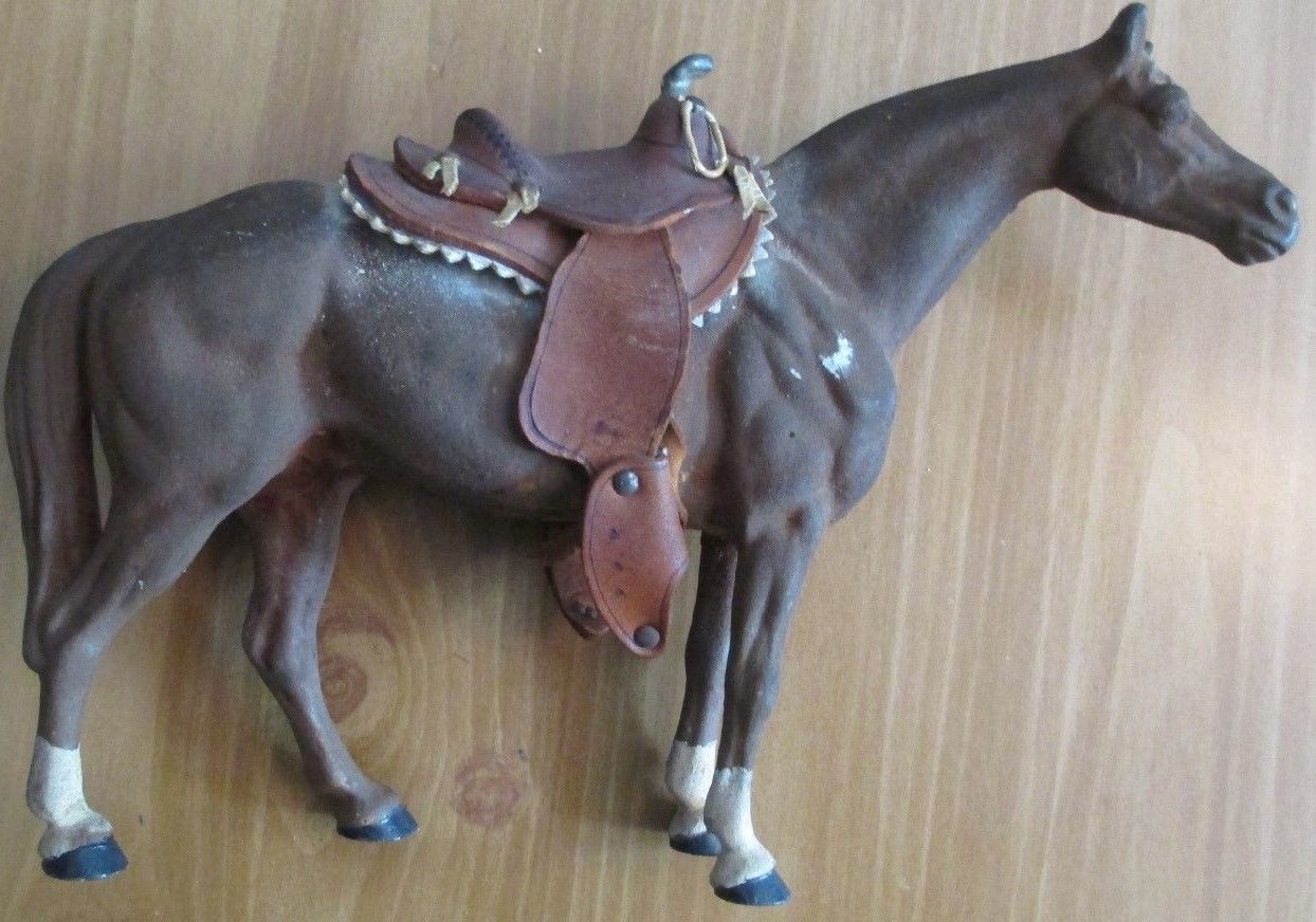 Antique Cast Iron Horse Statue with leather saddle: Doorstop/Figurine Hubley?