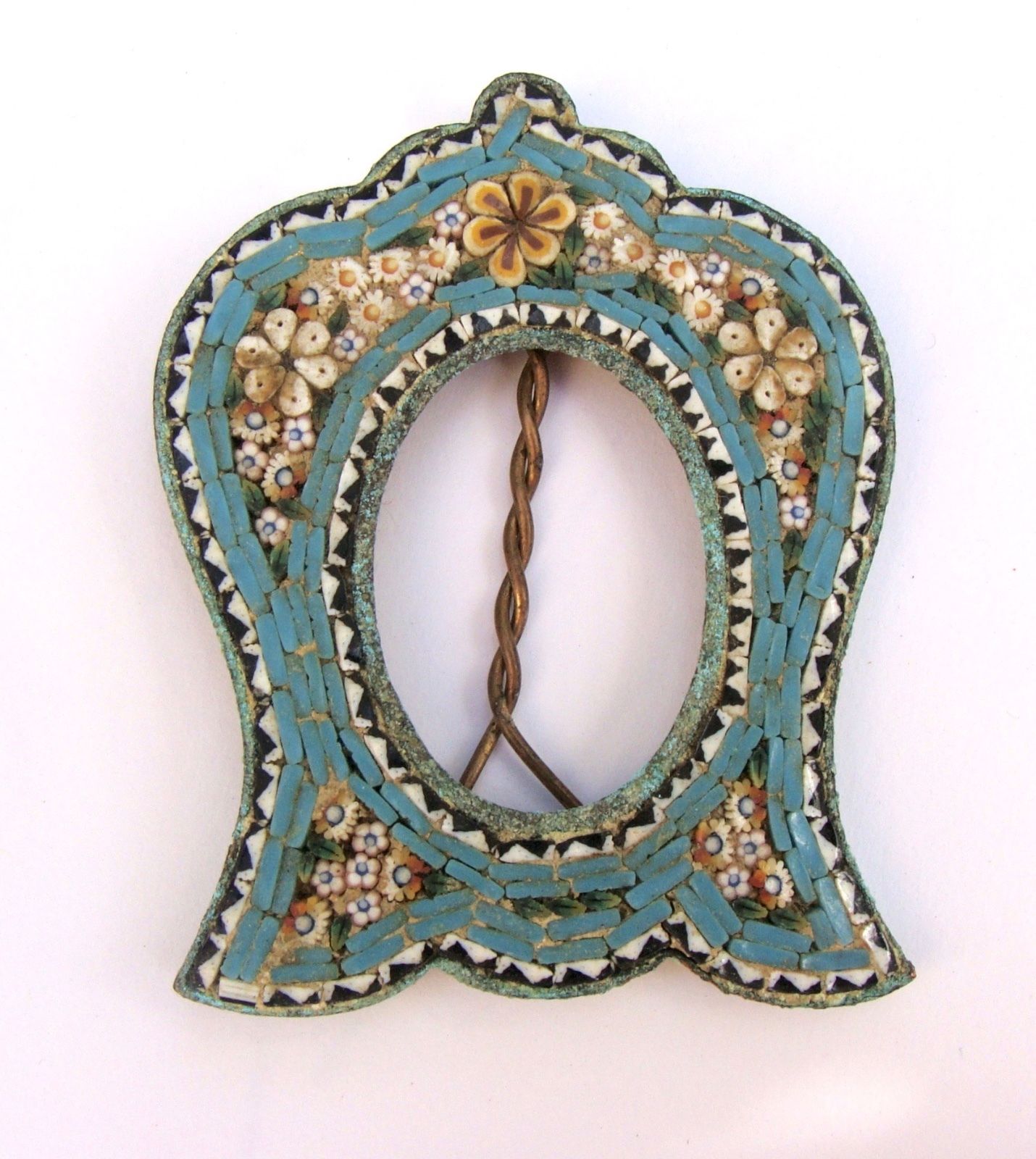 Antique Victorian Micro Mosaic Glass Flowers Picture Frame 2 7/8" H