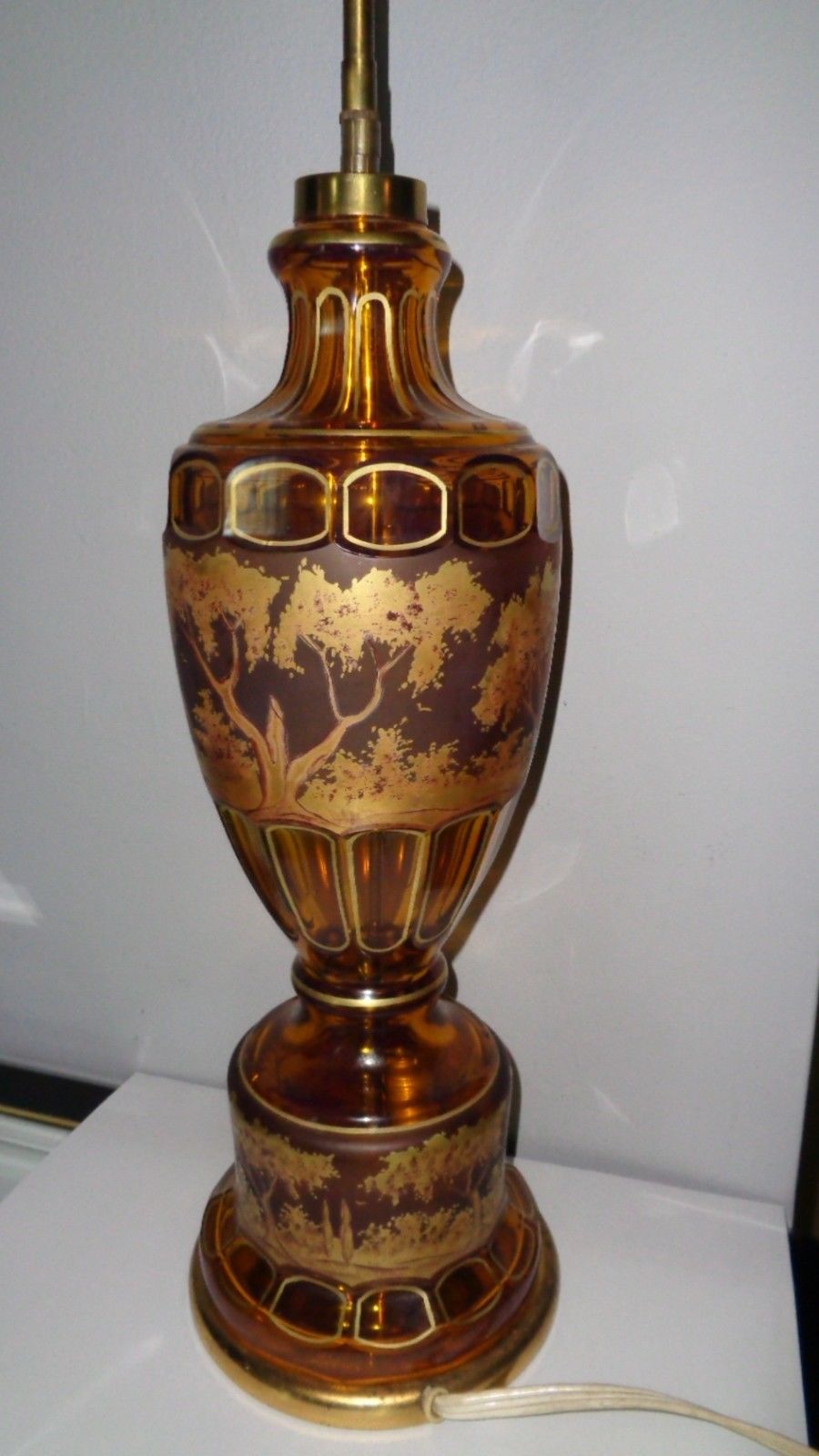 Title (ebay affiliate link): VINTAGE YELLOW GLASS LAMP 3-WAY LIGHTS BEVELED HAND PAINTED DESIGN EXC COND
