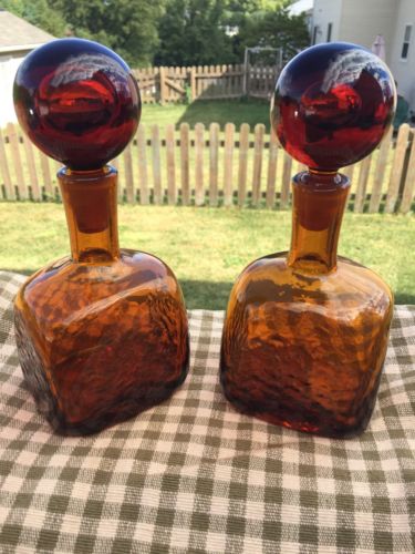 Title (ebay affiliate link): Pair Of Vintage Amber Decorative Glass Decanters/Bottles W/ Stoppers