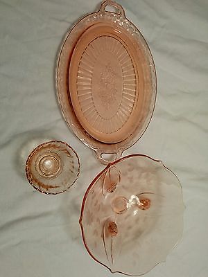 Pink Depression Glass Tray, Bowl and Candy Dish