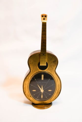 Title (ebay affiliate link): VINTAGE SWISS SWIZA SHEFFIELD MUSICAL ALARM GUITAR CLOCK