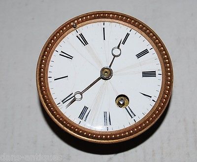 Antique round brass clock movement with face for parts or repair #3