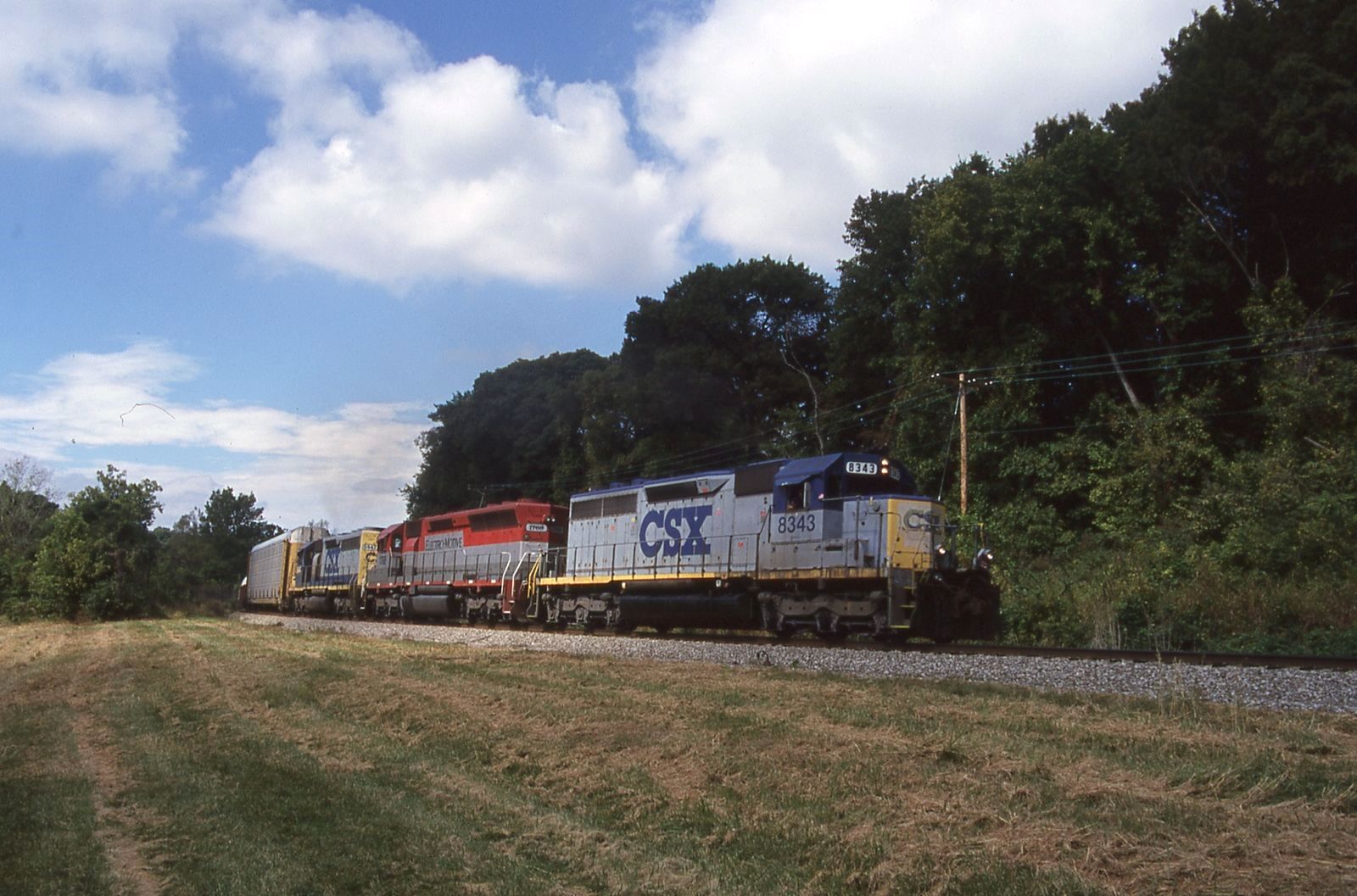 CSX SD40-2 # 8343, EMD SD45 # 1768 @ Caseyville, IL 9/23/2000