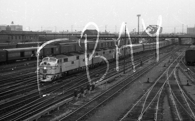 Title (ebay affiliate link): 2 original negatives CB&Q Burlington E7a"s with passenger trains Chicago 1/1961