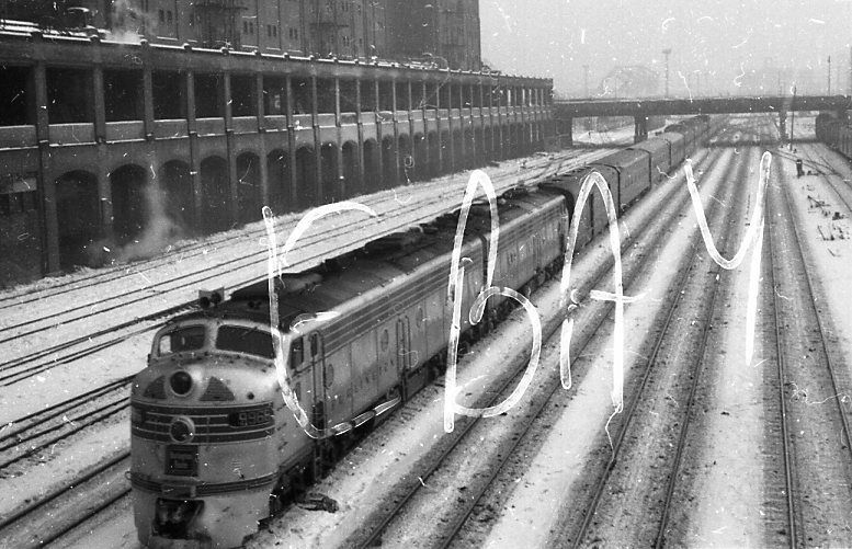 Original negative CB&Q Burlington E8A #9966 Chicago, IL 12/31/1960