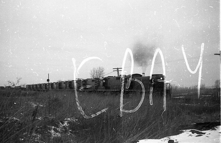 Original negative B&O Baltimore & Ohio train of locos led by an S2 Hammond 1962
