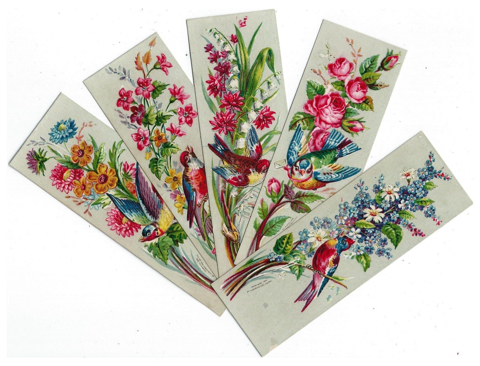 5 1878 UNPRINTED TRADE CARD BOOKMARKS-BUFFORD PRINTERS-BIRDS-CHROMO-LITHOGRAPH