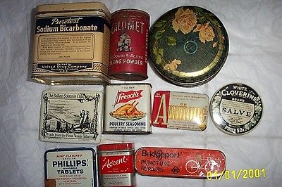 Lot of 10 Old Vintage Tins - TINDECO, PURESTEST and more