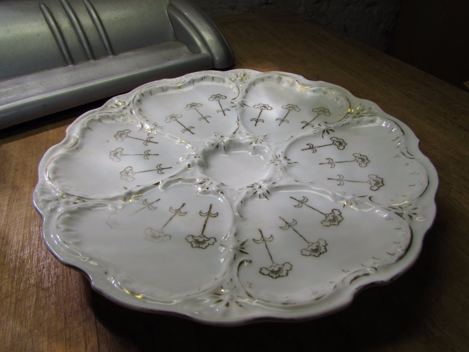 GORGEOUS VICTORIAN ERA GERMAN OYSTER PLATE HOLDS 6 PLUS CENTER