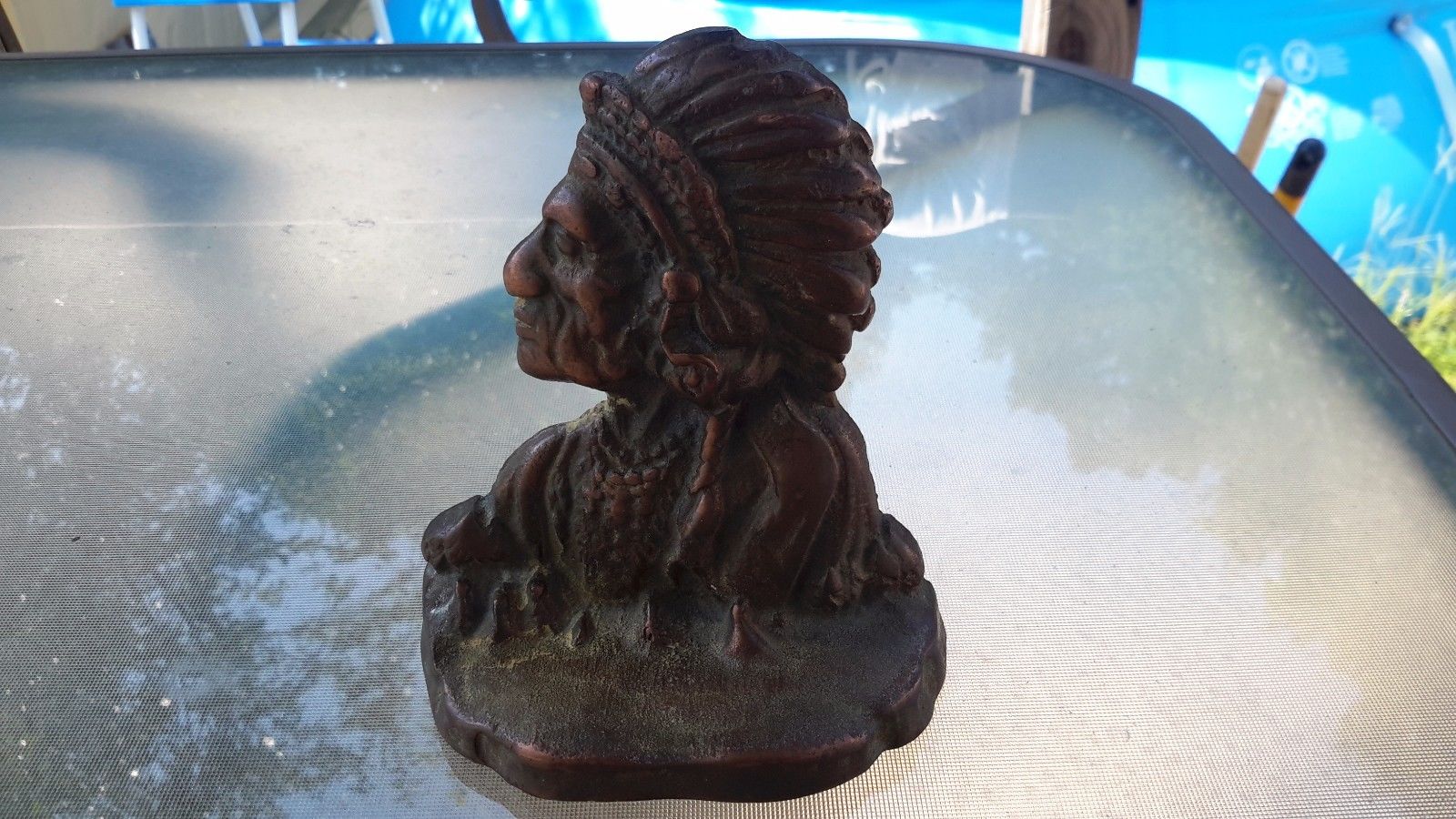 Title (ebay affiliate link): EARLY CIRCA 1910-1920 ANTIQUE INDIAN HEAD CAST METAL BRONZE BOOKEND