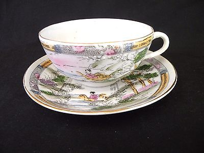Very Old Hand Painted Japan Tea Cup and Saucer, Eggshell Porcelain, Moriage
