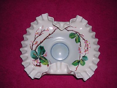 Vintage Antique Ruffled Edge Glass Brides Basket Bowl Only Enameled Flowers