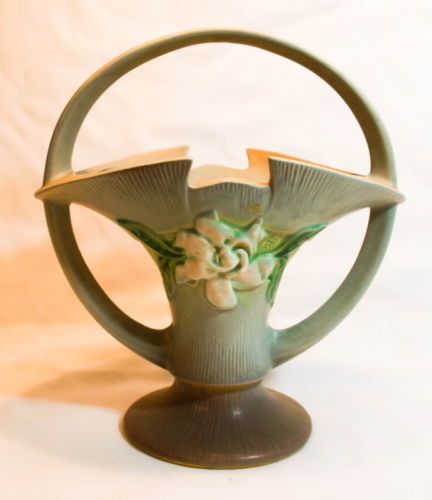 EARLY VINTAGE ROSEVILLE POTTERY GREY GARDENIA BASKET BOWL 609-10