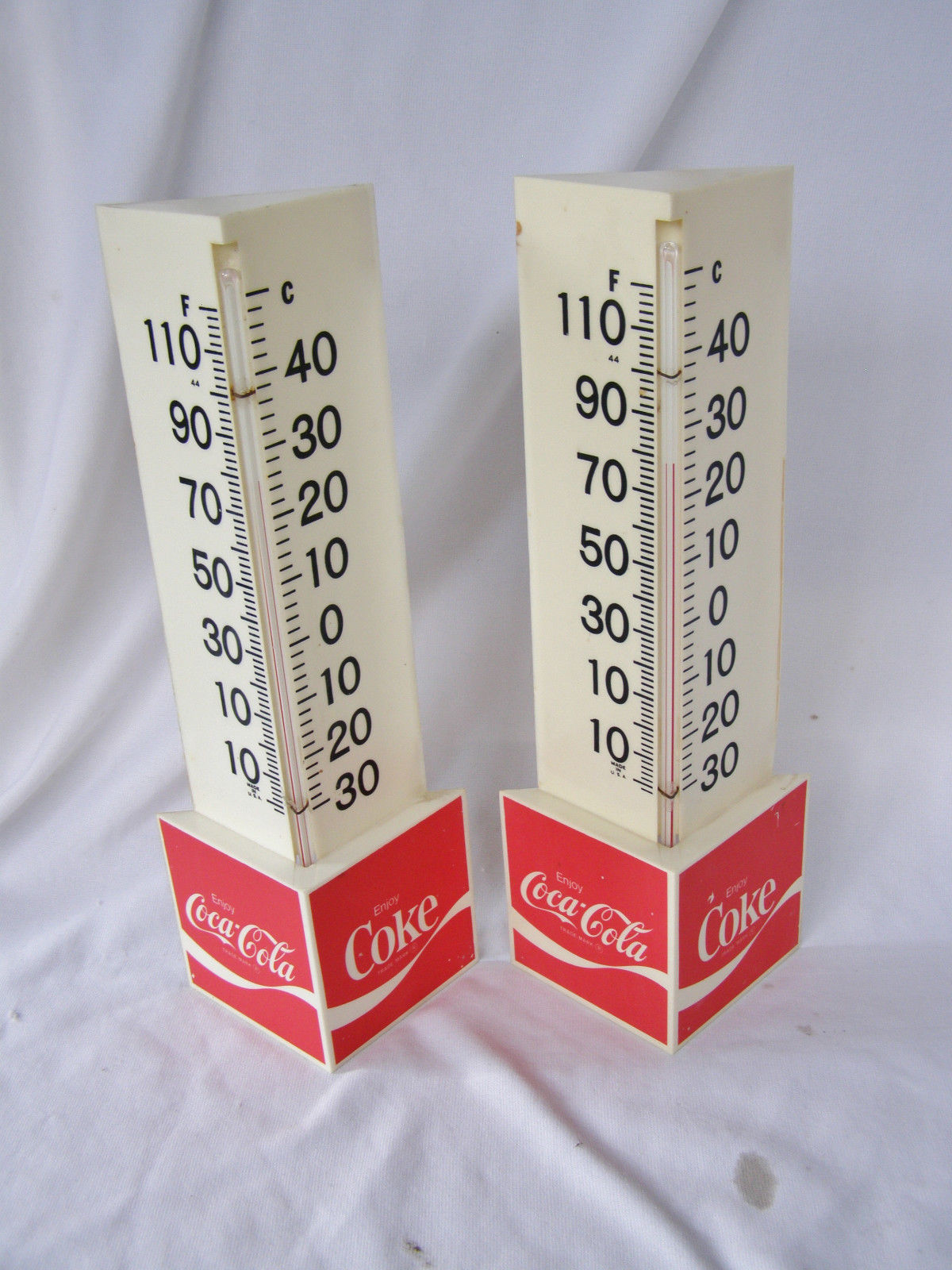 Title (ebay affiliate link): Lot Of 2 Vintage 1970's Coca Cola Plastic Corner Thermometer 15" Coke, both work