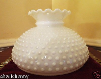 Title (ebay affiliate link): Vintage 10" Fitter HOBNAIL Milk Glass Student Oil Table Lamp Shade Ruffled Top