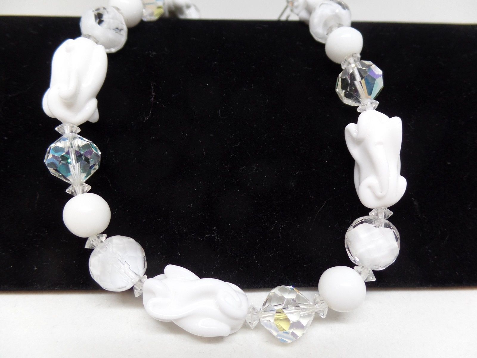 Title (ebay affiliate link): CORO Signed Vintage White Milk Glass & Aurora Borealis Crystal Necklace with Tag