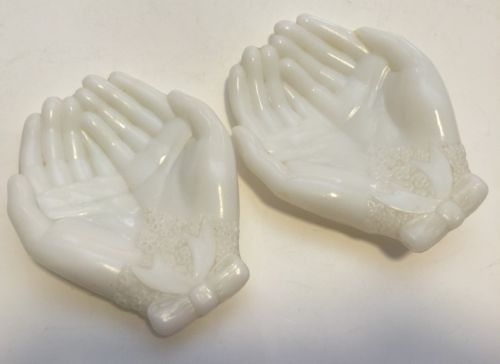 Two White Milk Glass Soap Dish OPEN HANDS- Vintage Avon