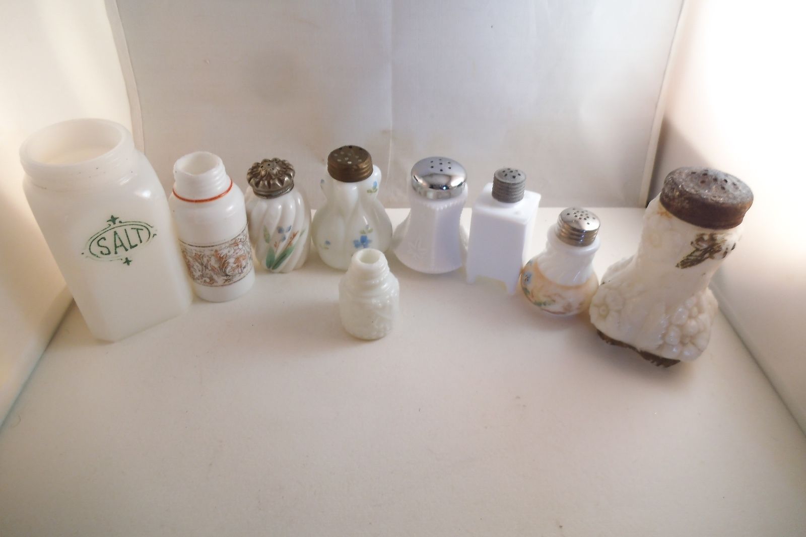 Title (ebay affiliate link): Vintage Mixed Lot of Salt & Pepper Shakers Milk Glass EAPG Wild Rose GE Swirl
